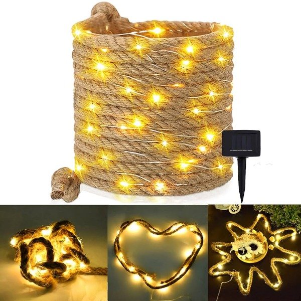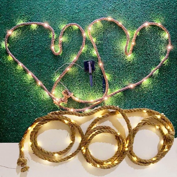 Resistente al agua y duradero: la luz decorativa y los componentes de la caja de la batería son resistentes al agua IP65. La cuerda de sisal se usa a menudo en el mar, es resistente a la corrosión, tiene una gran resistencia y se puede usar en jardines y patios sin preocuparse por la humedad y el mal tiempo.